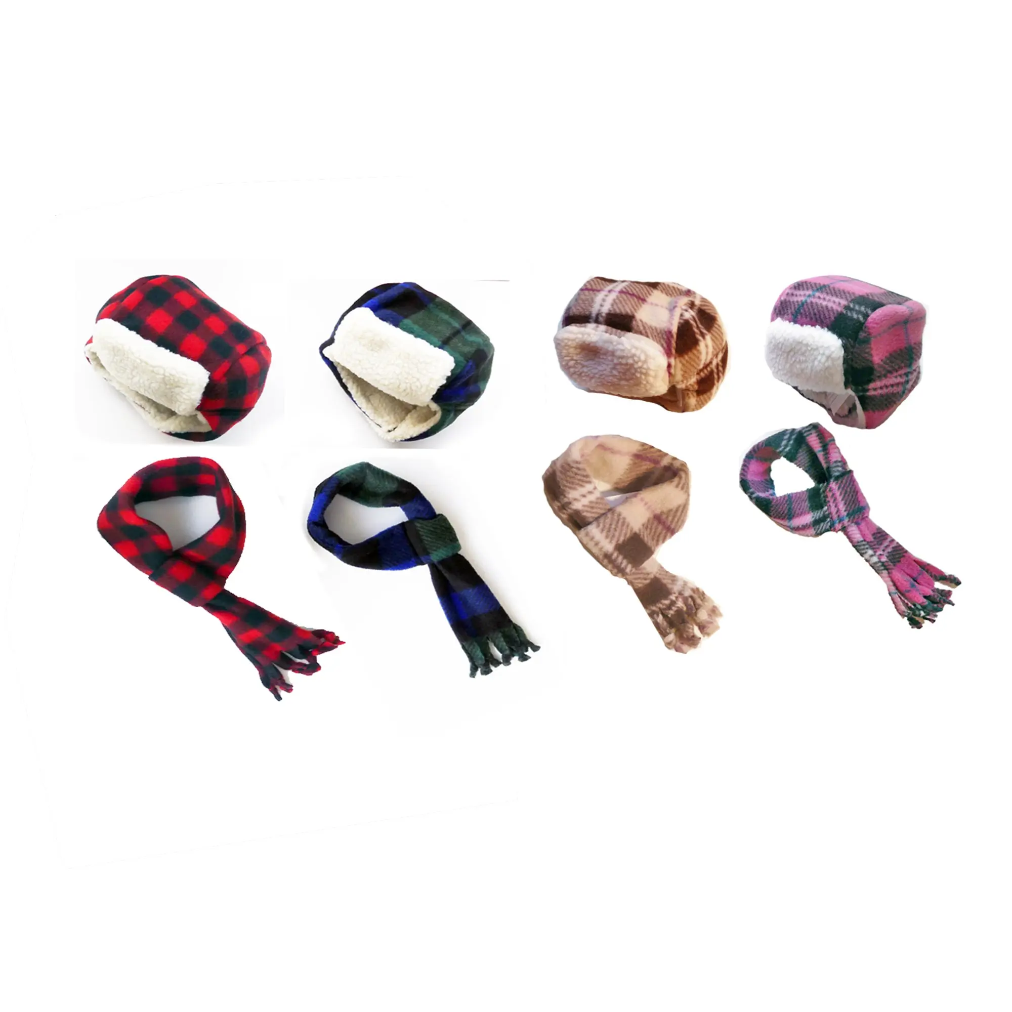 Aviator Dog Hats and Scarves Sets Fleece Prints Up to 100+ LBS